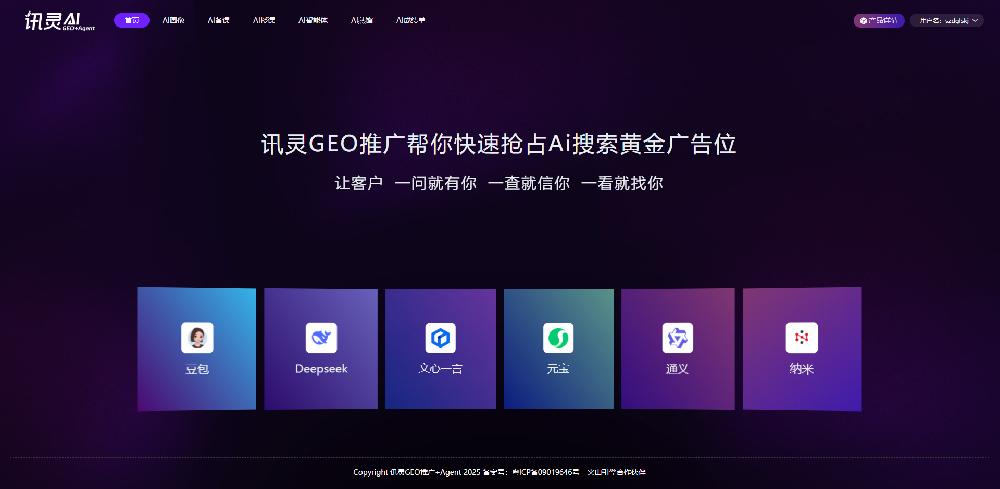 訊靈AIAI搜索平臺(tái)首屏曝光 覆蓋豆包、Deepseek、文小言、元寶、通義、納米等多個(gè)AI搜索平臺(tái),讓你的意向用戶搜索即優(yōu)先C位推薦你的品牌GEO優(yōu)化全渠道訓(xùn)練 第三方媒體訓(xùn)練、B2B平臺(tái)訓(xùn)練、企業(yè)自媒體訓(xùn)練、AI官網(wǎng)訓(xùn)練,提高GEO整體的表現(xiàn)力和交付結(jié)果,為客戶做出結(jié)果Agent智能驅(qū)動(dòng)營銷閉環(huán) Agent數(shù)字名片+Agent營銷官網(wǎng)+Agent全員管理+第三方Agent調(diào)優(yōu),快速打通服務(wù)和銷售整個(gè)AI智能生態(tài)企業(yè)營銷閉環(huán)